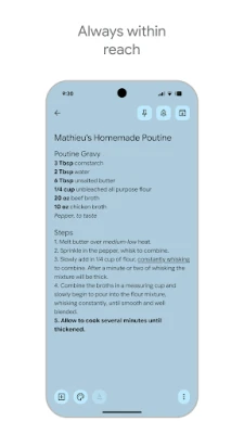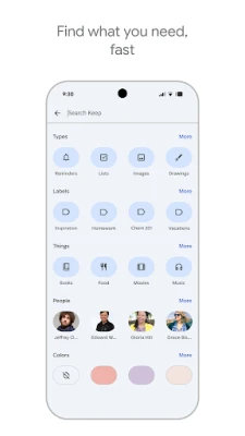 복잡한 생각을 깔끔하게 정돈하고 싶다면, Google Keep의 직관적인 분류 시스템을 활용해 보세요. 색상별로 메모를 구분하고 맞춤 라벨을 부여하여 필요한 정보를 한눈에 파악할 수 있습니다. 수많은 메모 속에서도 강력한 검색 기능으로 원하는 내용을 즉시 찾아낼 수 있으며, 중요한 메모는 휴대전화나 태블릿의 홈 화면 위젯, 또는 Wear OS 카드를 통해 빠르게 고정하여 언제든 접근할 수 있습니다. 친구나 가족과 함께 프로젝트를 계획하거나 깜짝 파티를 준비할 때, Google Keep에서 메모를 공유하고 실시간으로 함께 작업하며 아이디어를 발전시켜 보세요.