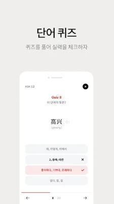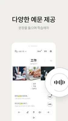 초급부터 고급까지, 모든 수준의 학습자를 위한 맞춤형 단어장이 '저절로암기 중국어'에 준비되어 있습니다. 현지인이 직접 엄선한 실용적인 예문들을 통해 단어가 실제 대화에서 어떻게 사용되는지 익힐 수 있으며, 잘 외워지지 않는 단어는 나만의 단어장에 따로 모아 집중적으로 복습할 수 있습니다. 이미 숙지한 단어는 숨김 처리하여 효율적인 학습 흐름을 유지할 수 있으며, 자동 슬라이드 쇼 기능으로 손쉽게 단어를 익히는 '고급 기능'도 경험해 보세요. 주식회사 와포가 개발한 '저절로암기 중국어'와 함께라면, 중국어 마스터의 길이 더욱 즐겁고 효과적일 것입니다.