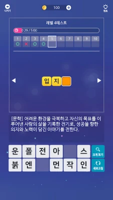 지친 일상 속에서 잠시 멈춰 지적 유희를 즐기고 싶으신가요? **모두의 가로세로 낱말퀴즈**는 당신의 두뇌를 깨우고 어휘력을 확장시켜 줄 최고의 선택입니다. 국립국어원 표준국어 대사전을 기반으로 한 방대하고 정확한 문제들은 물론, 일상부터 전문 분야까지 아우르는 다채로운 지식의 향연이 펼쳐집니다. 단순한 퀴즈를 넘어, 끊임없이 배우고 성장하는 기쁨을 선사합니다.