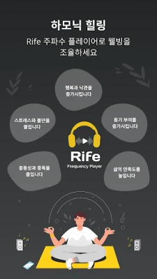 RIFE 주파수 플레이어는 당신의 고유한 웰빙 여정을 위한 개인화된 사운드 테라피를 제공합니다. 수많은 RIFE 주파수 중에서 당신의 필요에 가장 잘 맞는 조합을 찾아 나만의 치유 플레이리스트를 쉽게 만들 수 있습니다. 숙면을 위한 주파수부터 집중력을 높이는 소리, 혹은 마음의 평화를 위한 선율까지, 오직 당신만을 위한 맞춤형 사운드 환경을 조성해 보세요. 나아가, 여러분의 에너지와 목표에 정확히 부합하는 고유한 주파수를 생성하고 저장하여, 매번 새롭고 진정으로 개인화된 명상 세션을 경험할 수 있습니다. RIFE 주파수 플레이어는 당신의 웰빙 목표를 완벽하게 지원하는 든든한 동반자가 되어줄 것입니다.