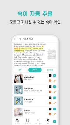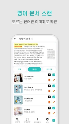 영어 단어 정리 시간 낭비는 이제 그만! 모르는 단어를 스캔하여 나만의 단어장을 빠르게 만들고 효율적으로 학습하세요. 초중고, 수능, 토익, 토플 등 모든 영어 시험 대비에 완벽한 동반자입니다. 소중한 당신의 시간을 아껴드립니다.