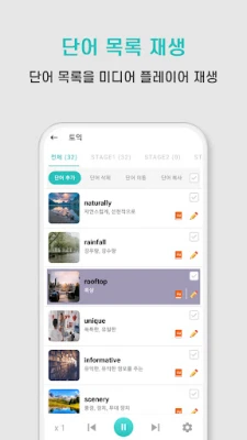 학습 효과를 극대화하기 위한 다채로운 기능들도 "영단어 스캐너"에 모두 담겨 있습니다. 단어를 단순히 암기하는 것을 넘어, 나만의 이미지를 연결하여 시각적 기억을 활용하는 방식으로 장기 기억력을 향상시켜 보세요. 객관식, 플래시 카드, 주관식 등 다양한 형식의 퀴즈로 흥미롭게 실력을 점검하고, 틀린 문제만 반복 학습하며 약점을 보완할 수 있습니다. 바쁜 일상 속에서도 틈틈이 학습할 수 있도록, 정리된 단어 목록을 미디어 플레이어처럼 음성으로 들을 수 있는 기능도 제공합니다. "박정수" 개발자의 깊이 있는 연구로 탄생한 이 앱은 전 세계 50개국 이상의 고품질 AI 음성 지원을 통해 정확한 발음을 학습하며 어학 실력을 한 단계 더 끌어올릴 기회를 선사합니다.